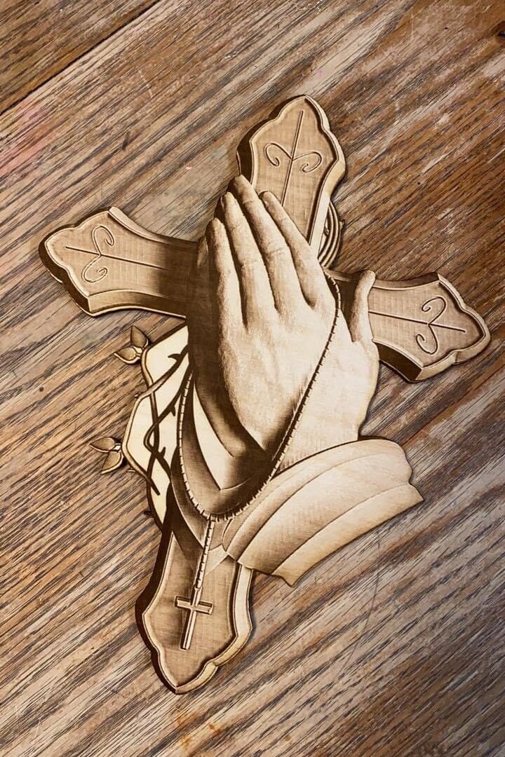 APPROXIMATEY 10X7 INCHES, THIS PRAYING HANDS HANDS PERFECTLY ON A WALL OR REQUEST ON A RECTANGLE BACKER AND PLACED ON A STAND.